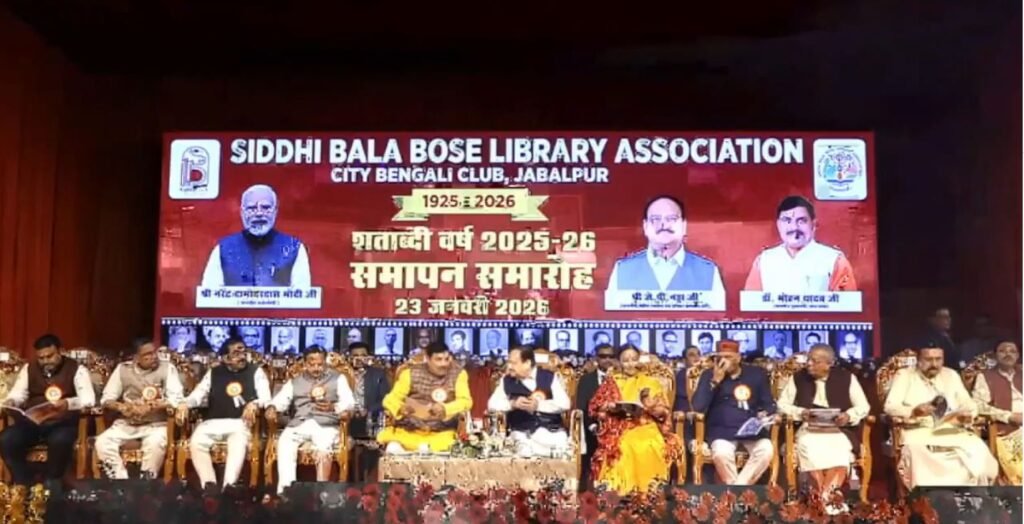 जबलपुर। ज्ञान, विचार और संस्कृति की शताब्दी परंपरा को समर्पित सिद्धि बाला बोस लाइब्रेरी एसोसिएशन के शताब्दी वर्ष के समापन समारोह ने जबलपुर को एक बार फिर बौद्धिक विमर्श, साहित्यिक चेतना और राष्ट्रनिर्माण के विचारों का केंद्र बना दिया। इस ऐतिहासिक अवसर पर माननीय केंद्रीय मंत्री श्री जे.पी. नड्डा जी की गरिमामयी उपस्थिति ने समारोह की गरिमा को और अधिक ऊंचाई प्रदान की।
