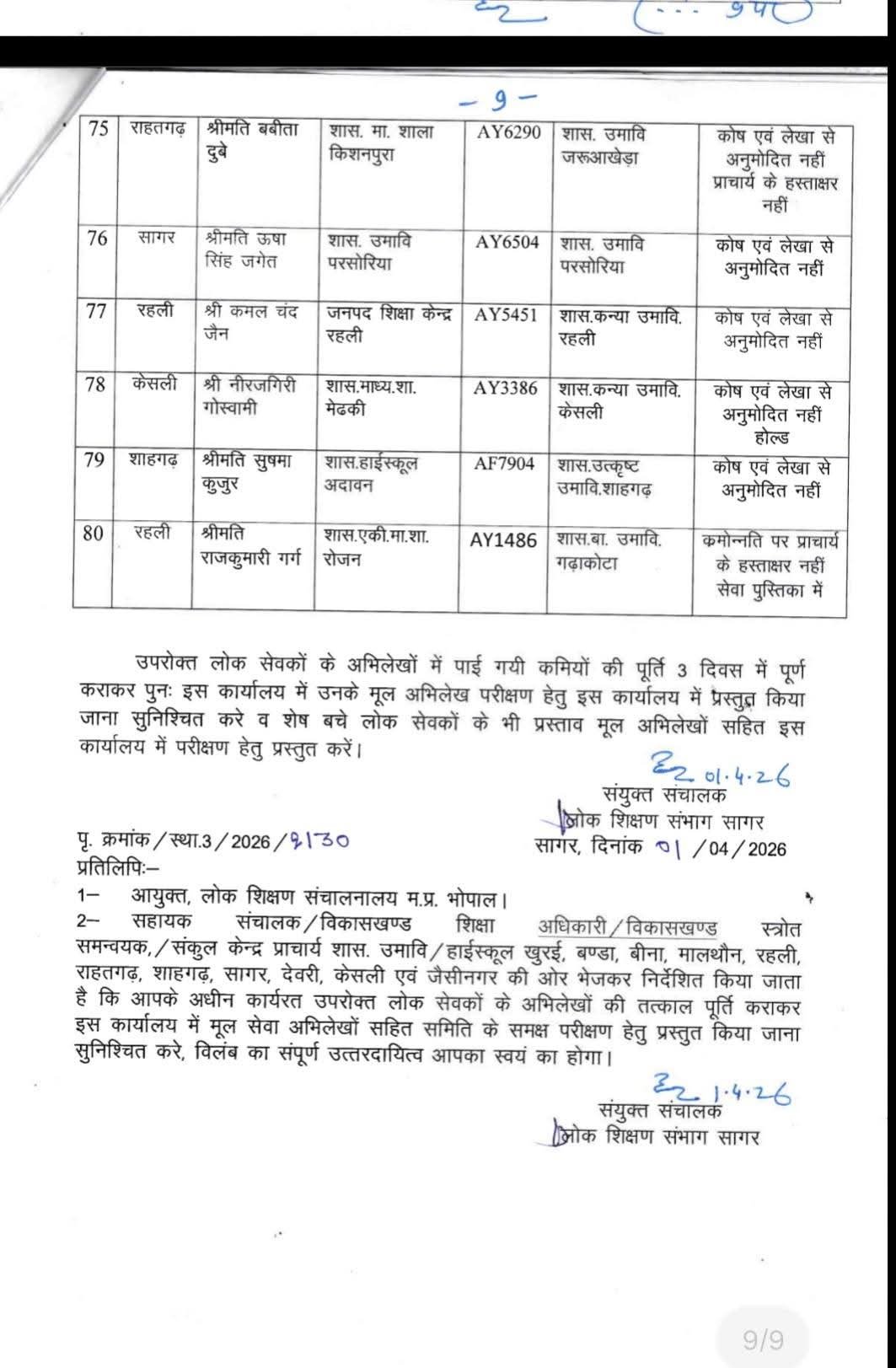 संबंधित अधिकारियों को यह भी निर्देशित किया गया है कि वे अपने अधीनस्थ संस्थानों के माध्यमिक शिक्षक संवर्ग के सभी लंबित प्रकरणों की समीक्षा करें तथा जिन प्रकरणों में कमियां पाई गई हैं, उनका शीघ्र निराकरण कर आवश्यक दस्तावेजों सहित पुनः प्रस्तुत करें। इसके साथ ही यह भी सुनिश्चित किया जाए कि भविष्य में इस प्रकार की त्रुटियां न हों, इसके लिए अभिलेखों का संधारण अद्यतन एवं व्यवस्थित रूप से किया जाए।