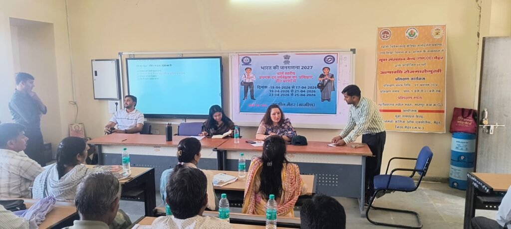 मैहर। आगामी जनगणना 2027 की तैयारियों को लेकर जिला प्रशासन द्वारा प्रशिक्षण कार्यक्रमों को गंभीरता के साथ संचालित किया जा रहा है। इसी क्रम में कलेक्टर मैहर एवं प्रमुख जिला जनगणना अधिकारी बिदिशा मुखर्जी ने शुक्रवार को विवेकानंद महाविद्यालय मैहर पहुंचकर जनगणना कार्य में संलग्न प्रगणकों और सुपरवाइजरों को दिए जा रहे प्रशिक्षण का निरीक्षण किया। निरीक्षण के दौरान कलेक्टर ने प्रशिक्षण कक्षों में पहुंचकर व्यवस्थाओं का जायजा लिया और प्रशिक्षण ले रहे प्रगणकों एवं सुपरवाइजरों से संवाद किया। उन्होंने स्पष्ट निर्देश दिए कि भारत की जनगणना जैसे महत्वपूर्ण राष्ट्रीय कार्य को पूरी गंभीरता और जिम्मेदारी के साथ संपन्न किया जाए तथा गणना कार्य में किसी भी प्रकार की त्रुटि की गुंजाइश न रहे।