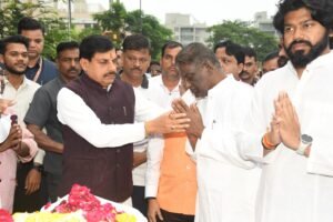 भोपाल। मुख्यमंत्री डॉ. मोहन यादव शुक्रवार को अखिल भारतीय आयुर्विज्ञान संस्थान (AIIMS) भोपाल पहुंचे, जहाँ उन्होंने मध्यप्रदेश शासन के पूर्व मंत्री डॉ. प्रभुराम चौधरी की पूजनीय माता जी स्वर्गीय श्रीमती सुमित्रा देवी के पार्थिव दर्शन किए। मुख्यमंत्री ने शोक संतप्त परिजनों से भेंट कर अपनी गहरी संवेदनाएँ व्यक्त कीं और परिवार को ढांढस बंधाया।