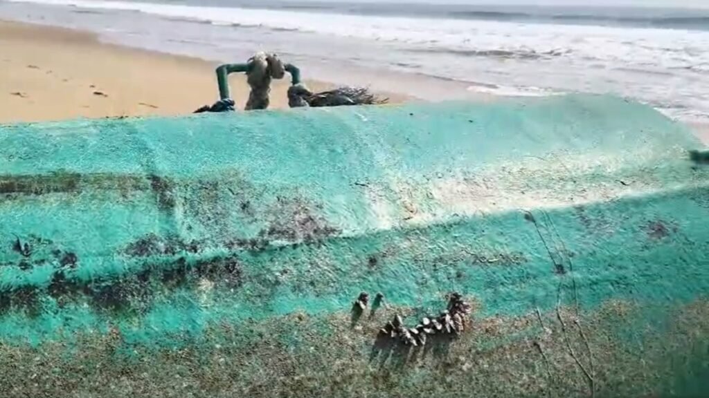 समुद्र तट पर बहकर आया लोहे का रहस्यमयी विशाल टुकड़ा, लिखा है- ‘AMS 6’, देखिए VIDEO